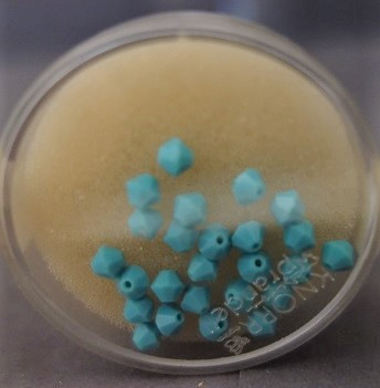 Glasperlen Auslaufartikel, Swarovski Perlen opal in türkisblau, 25 Stück, 4 mm Kristallschliff-Doppelkegel