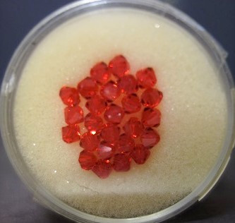 Glasperlen Auslaufartikel, Swarovski Perlen transparent in light siamrot, 25 Stück, 4 mm Kristallschliff-Doppelkegel