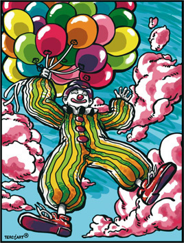 Produkt: Samtbild Clown mit Luftballons, Format ca. 40x28 cm.