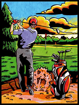 Samtbild "Golfer", Format ca. 51 x 40 cm