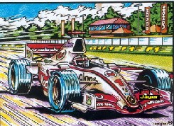 Samtbild "Rennauto", Format ca. 40 x 28 cm