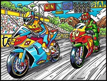 Samtbild "Racing Bikes", Format ca. 51 x 40 cm