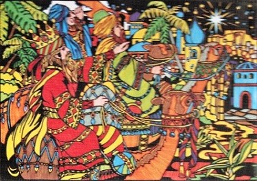 Samtbild der Heiligen 3 Könige, Format ca. 51 x 40 cm
