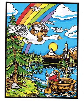 Produkt: Samtbild Zwerg mit Gans, Format ca. 40x28 cm.