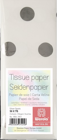 Blumenseidenpapier zum Basteln gefalzt im Polybeutel, 50 x 75 cm, im Satin-Look silver hot spots, farbfest, 3 Bögen
