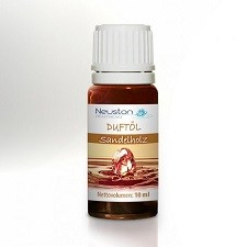 Seifenduftöl und universell einsetzbares Aromaduftöl von Neuston Healthcare, vielseitig verwendbar, Duft Sandalore, ähnelt dem Sandelholzduft, Sandalore ist lediglich ein Ersatzduftstoff, der dem echten Sandelholz im Duft sehr nahe kommt! 10 ml Glas-Fläschchen, etikettiert mit den Handelsnamen "Sandelholz" seitens des Herstellers Neuston Healthcare.