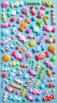 Crea - Pop Softy Stickers, Bonbons, auf einer 10 x 18 cm großen Klarsichtfolie gepackt - selbstklebend.