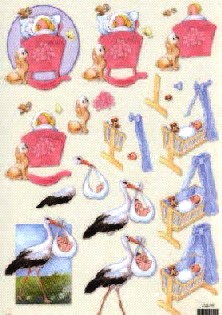 Step-by-step 3 D Schneidebogen, Format DIN A4, Babymotive rosa und hellblau
