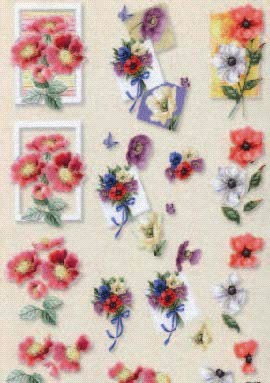 Step-by-step 3 D Schneidebogen, Format DIN A4, Blumen und Rahmen