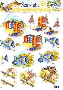 Step-by-step 3 D Schneidebogen, Format DIN A4, Fische, Muscheln maritim