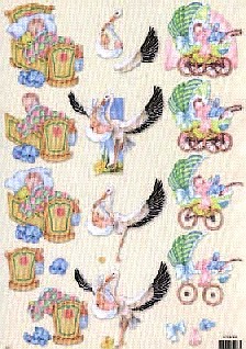 Step-by-step 3 D Schneidebogen, Format DIN A4, Klapperstorch, Baby