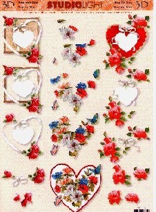 Step-by-step 3 D Schneidebogen, Format DIN A4, Rosen, Herzen