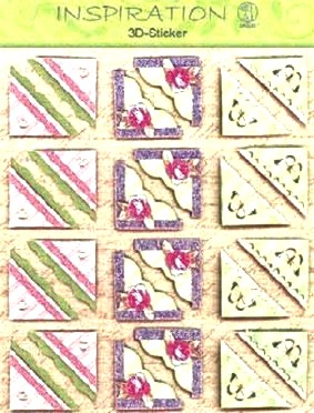 Handgemachte "Kreativ Accessoires", verschiedene Motive gem. Abbildung in 3 D - Technik, mit Distanzplättchen verarbeitet, selbstklebende Sticker.