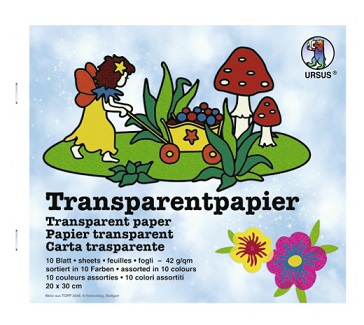Bunt sortiertes Transparentpapierheft , 20 x 30 cm, 10 Blatt