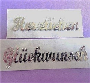 Produkt: Wachsornament Schriftzug Herzlichen Glückwunsch, silber, Stück