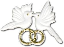 Produkt: Wachsornament Taupenpaar mit Ringen weiß gold, 2 Stück