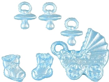 Verzierwachsornament "Geburt Junge", hellblau , 40 x 40 mm, 20x13mm, 20x15mm, 6 -tlg.