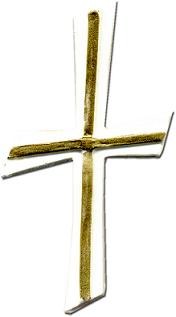 Produkt: Wachsornament für Kerzen, Kreuz weiß gold, Stück