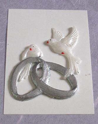 Produkt: Kerzenverzierwachsornament Taubenpaar auf Ring weiß silber, 1 Stück