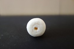 Watteform Faß ca. 18 mm Durchmesser, an der untersten Stelle ebenso ca. 18 mm dick, weiss
