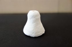 Watteform Glocke ca. 23 mm Durchmesser, an der untersten Stelle ebenso ca. 23 mm dick, weiss