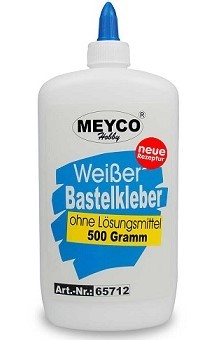Weisser Bastelkleber ohne Lösungsmittel von Meyco, 500 gr- Flasche